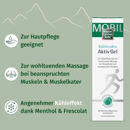 Das kühlende Aktiv Gel von Allgäuer Latschenkiefer ist ein angenehm erfrischendes Gel, das zur Hautpflege, sowie zur Anwendung bei einer Massage bei beanspruchter Muskulatur, Muskelkater und zur Unterstützung der Regeneration nach körperlicher Belastung entwickelt wurde.
