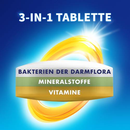 • 3-in-1 Tablette: 3-Schicht-Tablette kombiniert Vitamine & Mineralstoffe mit Bakterien der Darmflora, die Dank einer speziellen Beschichtung den Darm lebend erreichen können.3