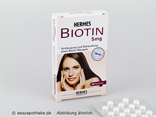 Täglich 1 Tablette Hermes Biotin (entspricht 5 mg Biotin). Zur Prophylaxe sind weniger als 0,2 mg pro Tag ausreichend.