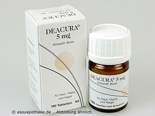 DEACURA® 5 mg Tabletten werden bis zur Normalisierung der Biotin-Werte im Blut eingenommen. Bitte fragen Sie hierzu Ihren Arzt.