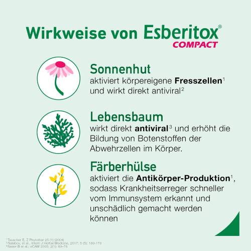 Denn: Esberitox COMPACT enthält den sogenannten Immun-Aktivkomplex von Esberitox in besonders hochkonzentrierter Form.