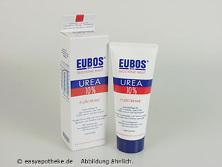 Die Eubos trockene Haut Urea 10% Fußcreme wird zur speziellen Pflege von trockenen und rissigen Füßen angewendet. Die Fußcreme enthält eine Kombination aus verschiedenen Pflegestoffen wie zum Beispiel Allantoin, Glycerin und Macadamia Öl, sowie den Wirkstoff Urea. Durch diese Wirkstoffkombination werden Hautschuppen und Verhornungen gelöst, der Hautzustand verbessert und die Haut wird vor einer erneuten Hornhautbildung und Druckstellen geschützt. Die Eubos trockene Haut Urea 10% Fußcreme eignet sich zur Fußpflege bei Neurodermitis, Psoriasis und Diabetes.