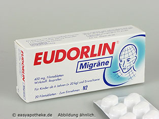 Die Eudorlin Migräne Filmtabletten werden zur schnellen Behandlung von Migräneanfällen angewendet.  Die Filmtabletten enthalten 400 mg des Wirkstoffes Ibuprofen. Während einer Migräne-Attacke kommt es immer zu einer Freisetzung von Prostaglandinen. Die Prostaglandine setzen Entzündungsreaktionen in Gang. Durch die Entzündung werden dann die empfindlichen Nervenenden der Gefäße gereizt, wodurch Schmerzsignale an die Schaltzentren im Gehirn gesendet werden. Bei einer Migräne-Attacke kommt es häufig auch zu Brechreiz, Übelkeit, Lichtempfindlichkeit und starkem Schmerzempfinden. Wenn man die Eudorlin Migräne Filmtabletten rechtzeitig einnimmt, hemmen sie die Produktion der Prostaglandine und der Migräneschmerz wird gelindert.