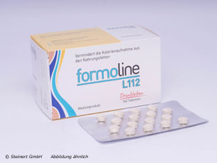 Die Formoline L112 dranbleiben Tabletten werden zur unterstuetzenden Behandlung von Uebergewicht und zur Gewichtskontrolle angewendet. Die Tabletten enthalten D-Glucosamin aus dem Krebstierpanzer. Durch den Wirkstoff wird die Cholesterinaufnahme aus der Nahrung deutlich gemindert. Das Glucosamin ist in der Lage aktiv Fett-Kalorien aus der Nahrung zu binden. Nach der Aufnahme wird der Wirkstoff zusammen mit dem gebundenen Fett auf natuerlichem Wege ausgeschieden, wodurch sich die Fettaufnahme aus dem Darm in den Koerper deutlich reduziert. Die Formoline L112 dranbleiben Tabletten sorgen zusaetzlich durch die aufquellenden Faserstoffe fuer ein langanhaltendes Saettigungsgefuehl.