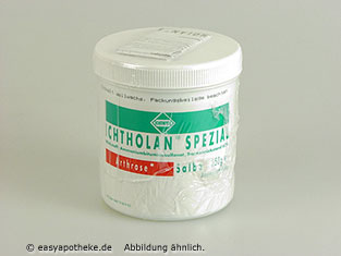 100 g Salbe enthalten: Ammoniumbituminosulfonat (Ichthyol) 85 g. Trockenrückstand 62% Sonstige Bestandteile: Wollwachs.