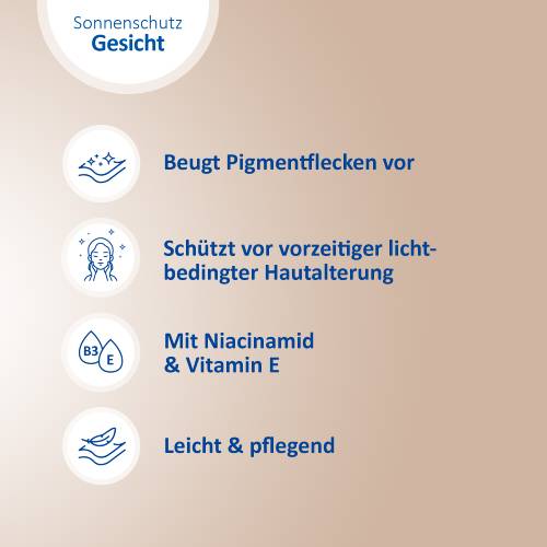 Ganzjähriger Sonnenschutz ist essenziell, da er nicht nur vor Sonnenbrand und sonnenbedingter Hautalterung schützt, sondern auch das Risiko an Hautkrebs zu erkranken reduziert. Für Menschen, die zu sonnenbedingten Pigmentflecken neigen, hat Ladival® die Anti-Pigmentflecken Sonnenschutz-Creme entwickelt, um Ihre empfindliche Gesichtshaut das ganze Jahr über zu schützen.