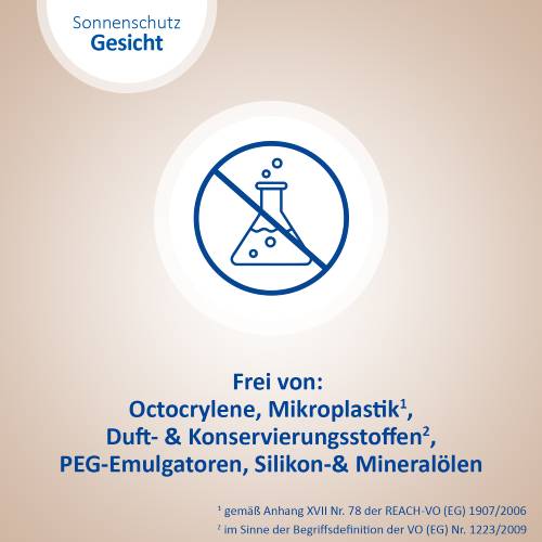 Dank ihrer leichten und pflegenden Rezeptur zieht die Sonnenschutz-Creme schnell ein und bietet eine ideale Grundlage für Make-Up. Sie schützt Ihre Haut effektiv vor sonnenbedingten Zellschäden und beugt mit Niacinamid und Vitamin E Pigmentflecken und vorzeitiger lichtbedingter Hautalterung vor. Die nicht komedogene Formel ist bei empfindlicher Haut, Mischhaut, sowie zu Akne neigender Haut gut geeignet. Die Creme legt sich sanft und unsichtbar auf die Haut, ohne Augenreizungen, Pilling-Effekte (Klumpen des Produktes auf der Haut), oder weiße Rückstände zu hinterlassen – so ist die Sonnenschutz-Ceme der perfekte Begleiter im Alltag.