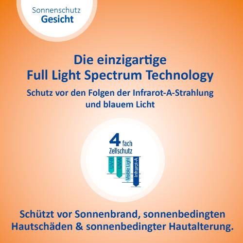 Sonnenstrahlen gibt es in verschiedenen Wellenlängen. Sie haben verschiedene Auswirkungen auf die Haut, wirken jedoch alle zellschädigend. Daher ist es wichtig einen Sonnenschutz zu verwenden, der rundum schützt. Dank einzigartigem 4-fach Zellschutz schützt die Ladival® Empfindliche Kinderhaut Sonnenschutz-Creme Gesicht & Körper vor UV-A- und UV-B-Strahlen, vor den Folgen der Infrarot-A-Strahlung und sichtbarem Licht (einschließlich blauem Licht).