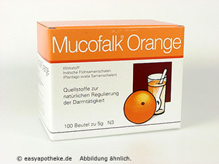 Die Mucofalk Orange Granulat Beutel werden sowohl zur Behandlung von Durchfall, als auch von Verstopfung angewendet. Die Beutel enthalten indischen Flohsamen. Bei dem indischen Flohsamen handelt es sich um eine Substanz aus der Gruppe der Schleimbildner. Die kleinen, hellbraunen Samenkörner verfügen über eine sehr hohe Quellfähigkeit. Sie sind in der Lage das 40fache ihres Gewichts an Wasser auszunehmen. Die Mucofalk Orange Granulat Beutel vergrößern durch das mitgeführte Wasser den Darminhalt, so dass es zu einer Anregung des Darms kommt.