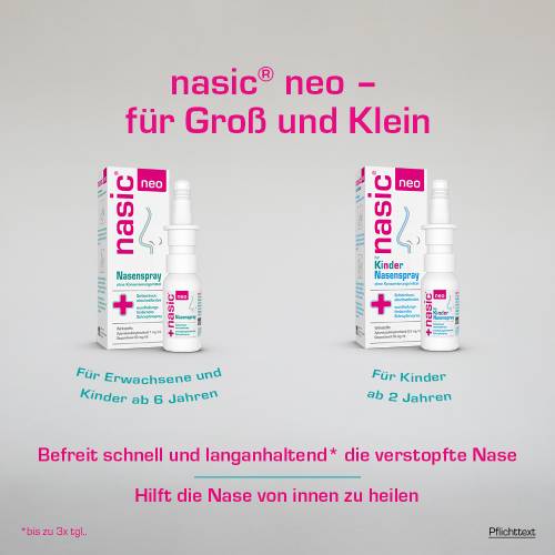 Das nasic® neo Nasenspray ist für Erwachsene und Kinder ab 6 Jahren geeignet und kann nach dem Öffnen bis zu 6 Monate verwendet werden.