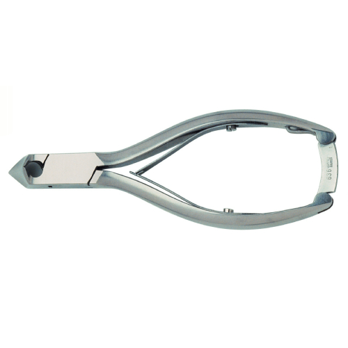 Diese  Nagelzange ist etwas Besonderes, das schwere Modell ist durchgesteckt und wird aus gehärtetem Stahl gefertigt. Sie hat eine Spitze, die um 90° gedreht ist und so der natürlichen Form des Nagels nachkommt. Das erleichtert das Schneiden der Fußnägel enorm, wenn man vor dem Fuß sitzt. Sie erreichen optimale Schneidergebnisse und können präzise arbeiten, wie ein Profi!