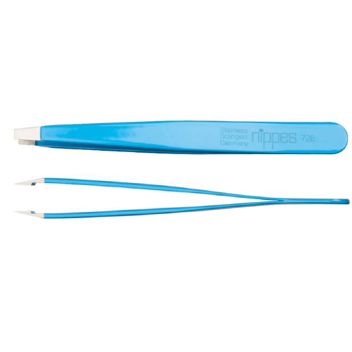 Eine Pinzette ist immer nur so gut, wie ihre Spitze. Die Beschaffung und die Form dieser definieren das Einsatzgebiet. Diese spezielle Kosmetik-Pinzette kommt mit einer geraden Spitze und eignet sich durch die Griffigkeit der Spitze besonders für feine Zupfarbeiten und präzises Arbeiten. Sie ist dabei handlich und angenehm in der Handhabung. Gefertigt aus Edelstahl und farbig lackiert. Größe: 90 mm. Nippes Premium Qualität
