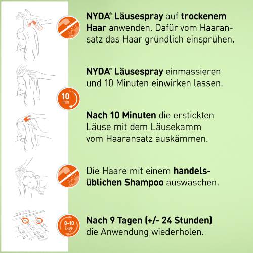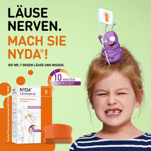Mit NYDA® Läusespray gibt es ein neues und zugleich erstattungsfähiges NYDA®-Produkt auf den Markt, das mit einer kurzen Einwirkzeit von nur 10 Minuten punktet und dem ein Läusekamm beiliegt. NYDA® Läusespray beseitigt die unerwünschten Krabbler zuverlässig, wie unlängst eine klinische Studie bestätigte.1 Durch die physikalische Wirkweise ist NYDA® Läusespray sehr gut verträglich und auch für die Anwendung bei Säuglingen, Schwangeren und Stillenden zugelassen.