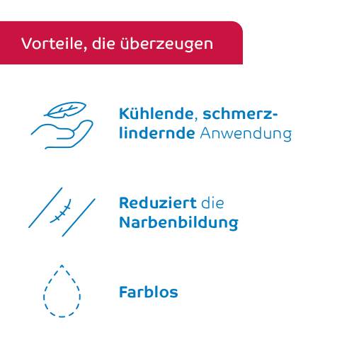 Egal, ob Schürf- , Kratz- und Schnittverletzungen oder leichte Verbrennungen wie Sonnenbrand – octenisept® Gel bietet schnelle Hilfe bei akuten Wunden. Bereits beim Auftragen wird der Schmerz deutlich reduziert. Nach 60 Sekunden bildet sich eine dünne Schutzschicht auf der Wunde, die das Eindringen von Keimen und Bakterien verhindert.