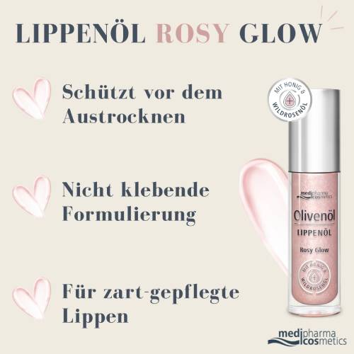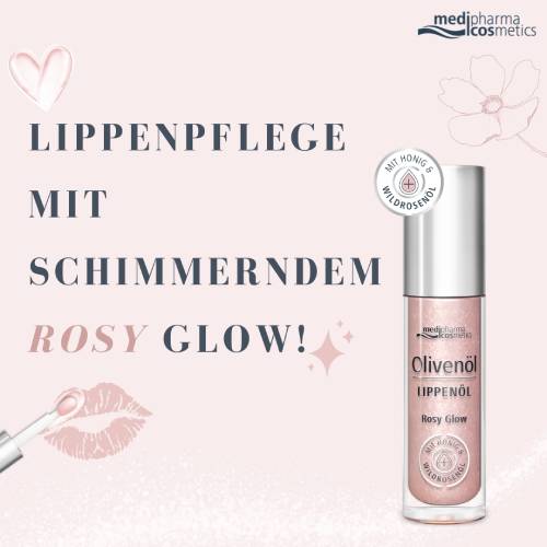 Entdecken Sie das Geheimnis zart gepflegter Lippen mit dem Olivenöl Lippenöl Rosy Glow. Die verwöhnende Lippenpflege vereint intensive Feuchtigkeit mit einem schimmernden Rosé-Glow, der die Lippen in einem wunderschönen Nude-Look erstrahlen lässt.