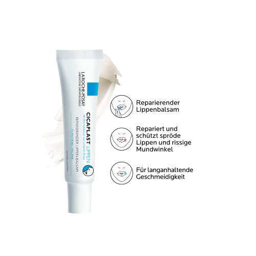 Die reparierende und schützende Intensiv-Pflege CICAPLAST LIPPEN von La Roche-Posay mildert das unangenehme Empfinden spröder Lippen und rissiger Mundwinkel. Mit seiner Barriere-Textur pflegt und schützt die Pflege beanspruchte Lippen und legt sich über die Haut. Lippen-Pflege mit 10 % Karitébutter macht das rissige Gewebe wieder geschmeidig, pflegt Mundwinkel intensiv und sorgt langanhaltende Geschmeidigkeit. Die Formel mit 5% Panthenol repariert und beruhigt gereizte Lippen. Eine besondere Innovation bieten die PM-Lipide. Sie verhindern den sogenannten Rückfall-Effekt, bei dem sich durch ständiges Auftragen die Trockenheit an den Lippen eher erhöht. Diese Lipide helfen dabei, die natürliche Hautschutzbarriere aufzubauen und so diesem Effekt ab der ersten Anwendung entgegenzuwirken. Alle Inhaltsstoffe in Kombination sorgen für ein langanhaltendes Wohlbefinden und eine intensive Pflege spröder Lippen.
