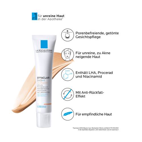 EFFACLAR DUO (+) UNIFIANT ist unsere ganzheitliche Lösung für unreine Haut von La Roche-Posay: Bekämpft starke Unreinheiten und Pickel. Wirkt hautberuhigend und entzündungslindernd. Befreit verstopfte Poren, verfeinert das Hautbild und wirkt anti-bakteriell. Mit hautberuhigendem Thermalwasser aus La Roche-Posay. In zwei Nuancen erhältlich.
