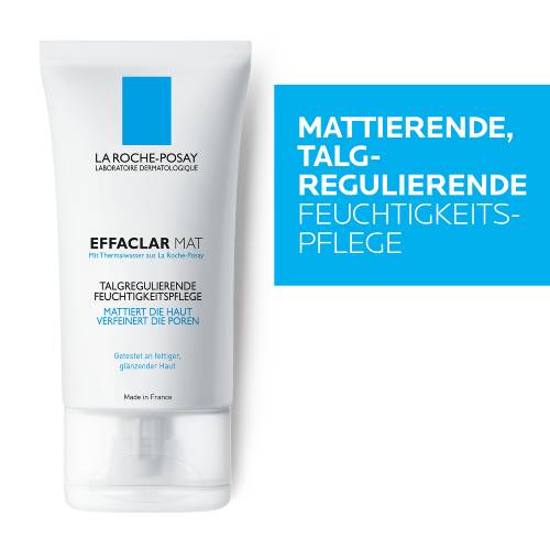 Mattierende Feuchtigkeitspflege für fettige und zu Akne neigende Haut Die EFFACLAR MAT Gesichtscreme von La Roche Posay mit Sebulyse sowie talgreduzierenden Micro-Spheres und Perliten wirkt einer übermäßigen Talgproduktion entgegen und mattiert die Haut langanhaltend. Ab der ersten Anwendung hinterlässt die Gesichtspflege für unreine Haut ein ebenmäßigeres Erscheinungsbild mit weniger Glanz. La Roche Posay EFFACLAR MAT für Teenager und Erwachsene Dank des Aktiv-Wirkstoffs LHA wirkt die Feuchtigkeitspflege für fettige, unreine Haut wie ein Mikro-Peeling und beugt effektiv überschüssigem Talg vor. Zugleich spendet das wohltuende Thermalwasser empfindlicher Haut Feuchtigkeit und beruhigt sie.