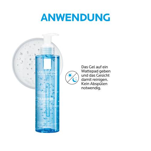 Anwendungshinweis: Das Reinigungsgel TOLERIANE ROSALIAC täglich morgens und/oder abends anwenden. Dazu den Gesichtsreiniger mit einem Wattepad oder mit den Fingerspitzen auf die Haut von Gesicht, Hals und Dekolleté auftragen. Mit kreisenden Bewegungen das Reinigungsgel verteilen und mit dem Wattepad vorsichtig abwischen. Ein weiteres Abspülen mit Wasser ist nicht notwendig. Das TOLERIANE ROSALIAC Reinigungsgel enthält keinen Alkohol und Duftstoffe. Es eignet es sich optimal bei empfindlicher und zu Rosazea oder Couperose neigender Haut. Dank des enthaltenen Thermalwassers wird die Haut beruhigt und geglättet.