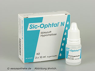 Sic- Ophtal N Augentropfen beinhalten den Wirkstoff Hypromellose. Die Augentropfen werden zur Behandlung von trockenen Augen und Augenreizungen in den Bindehautsack geträufelt. Die Sic- Ophtal N Augentropfen können ebenfalls zur Benetzung und Nachbenetzung von harten Kontaktlinsen angewendet werden. Diese sogenannten künstlichen Tränen ersetzen oder ergänzen den Tränenfilm des Auges. Sie bilden auf der Bindehaut und Hornhaut einen Gleit- und Schutzfilm.