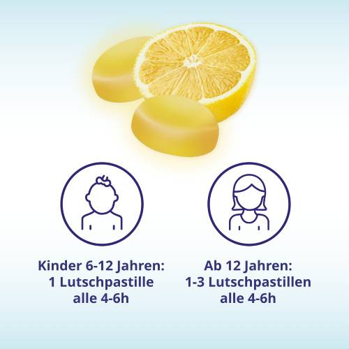 | Kinder von 6-12 Jahren | 1 Pastille | mehrmals täglich (max. 6 Pastillen pro Tag) | im Abstand von 4-6 Stunden, unabhängig von der Mahlzeit |