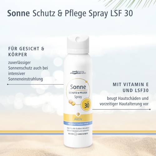 Sonne Schutz&Pflege Aerosol-Spray aktiv mit LSF 30 von medipharma cosmetics: Zuverlässiger Sonnenschutz für unterwegs und bei Outdoor-Aktivitäten
