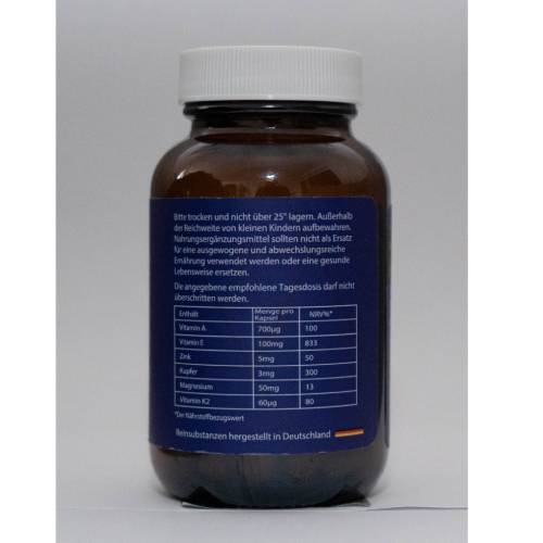 Vitamin A – 700 µg: Unterstützt die Sehkraft, die Hautgesundheit und die normale Funktion des Immunsystems.