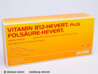 - 1 Ampulle "Vitamin B12 Hevert" zu 2 ml enthält: